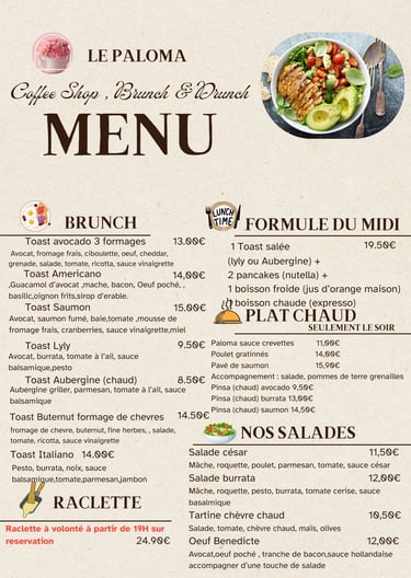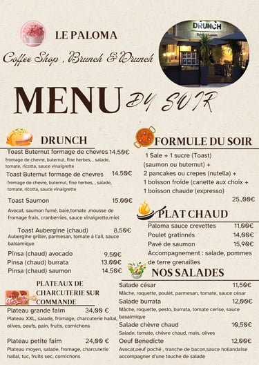 Venez savourer notre sélection brunch,drunch,cafés et thés dans une ambiance chaleureuse.